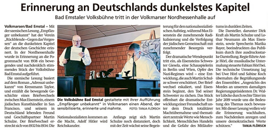 nach dem Buch „Adressat unbekannt“ von Kathrine Kressmann Taylor,